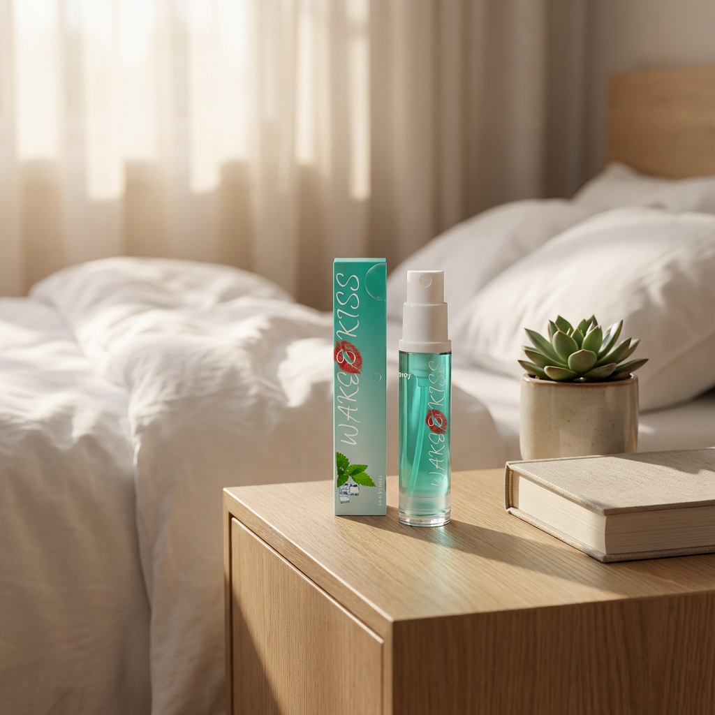 Wake & Kiss Oral Spray delivers instant, long-lasting freshness.